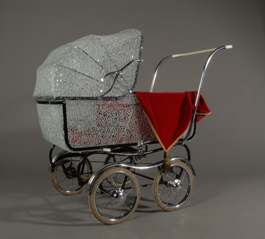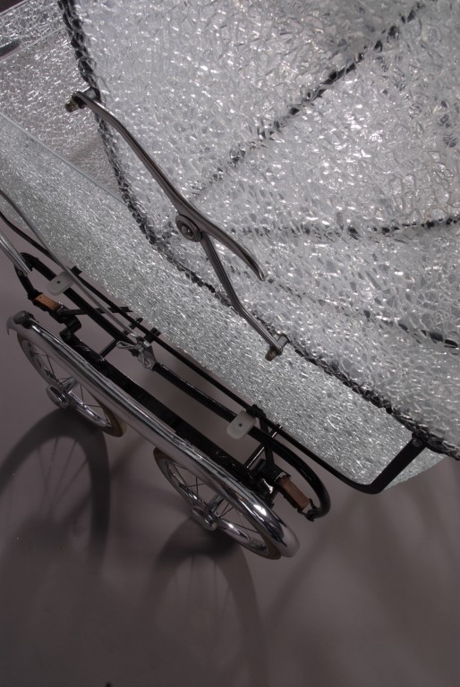 Pram 120x110 cm glass, perspex, steel and velvet. 2008