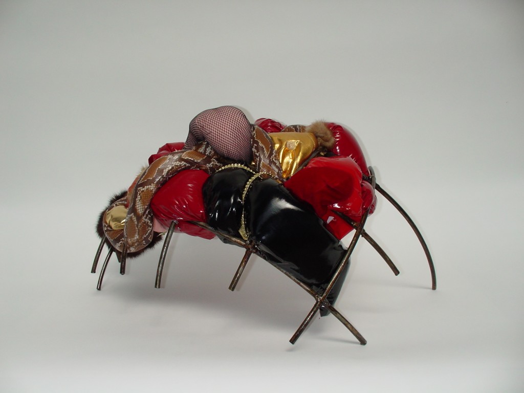 Patent vinyl cloth, foam, steel and gold paint.